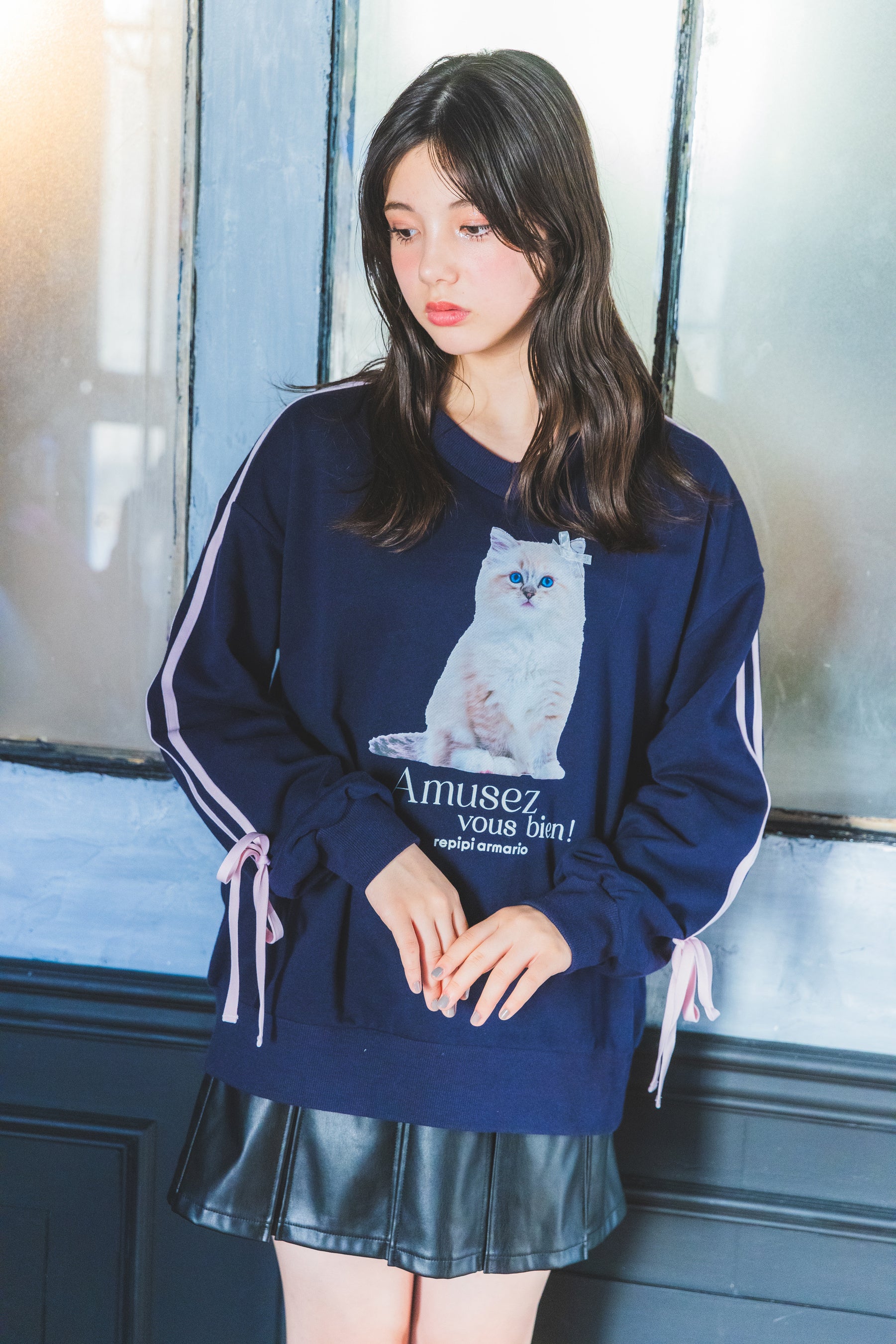 Vネックのゆるっとシルエットがかわいい!サイドラインとリボンで1枚でブロケットコアを楽しめるガーリートップス。