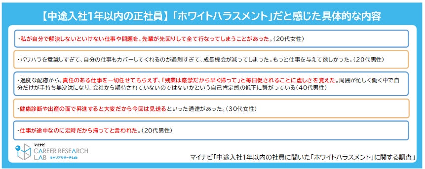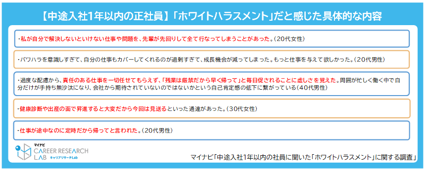 マイナビ「中途入社1年以内の社員に聞いた“ホワイトハラスメント”に関する調査」