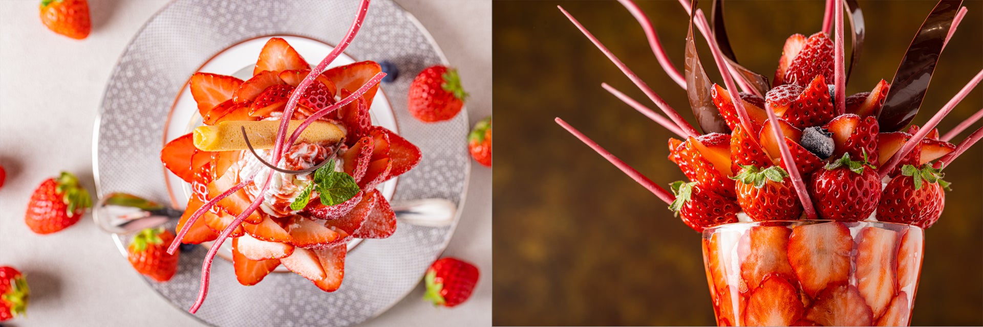 「伊豆産紅ほっぺのプレミアムいちごパフェ」は、サンゴをイメージしたアートなスペシャルパフェです。