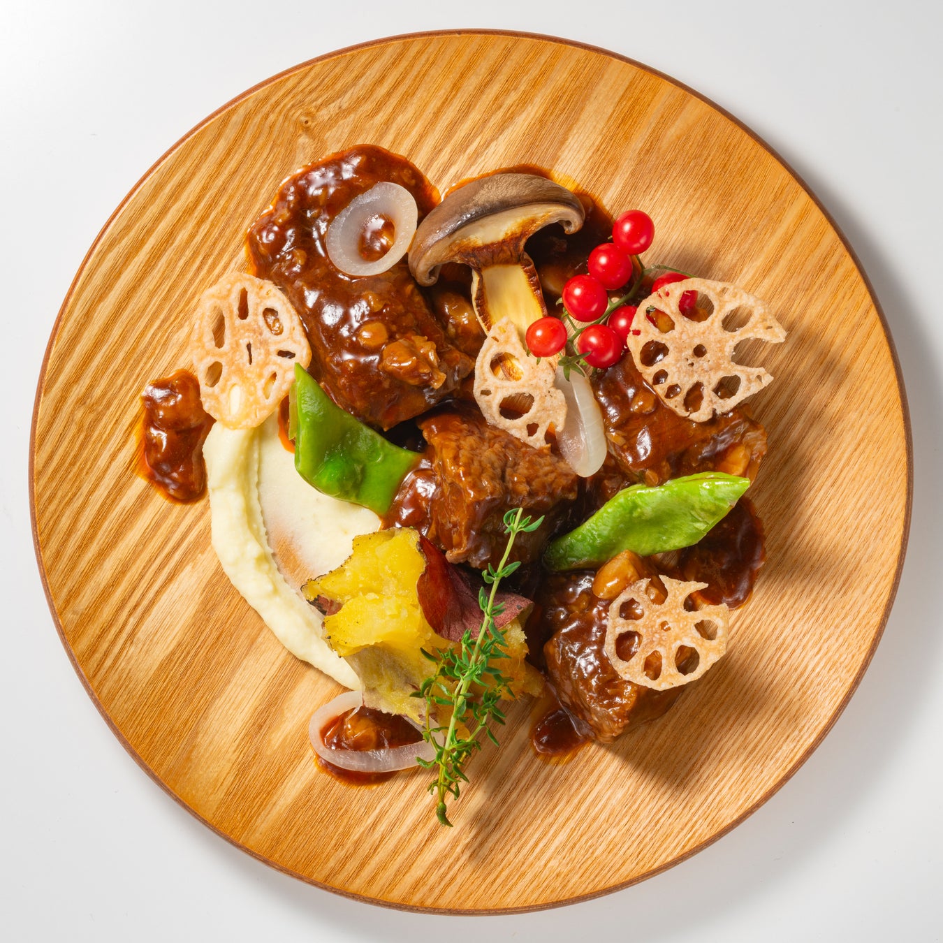 素材にこだわった「大分県産平飼い卵とスモークサーモンのシーザー」、平日ランチ限定の旨みとスパイスが織りなす上品な一皿、「山梨県産信玄どりもも肉と京都黒七味ポリネシアン」、平日ディナー限定の、ビールのコクと肉の旨みが引き立つ贅沢な一品「いわて蔵ビールみちのくレッドエールと兵庫県産太田牛の煮込み」など旨みと香りが広がる逸品が並びます。秋の恵みを味覚で巡る、美食の旅をご堪能ください。