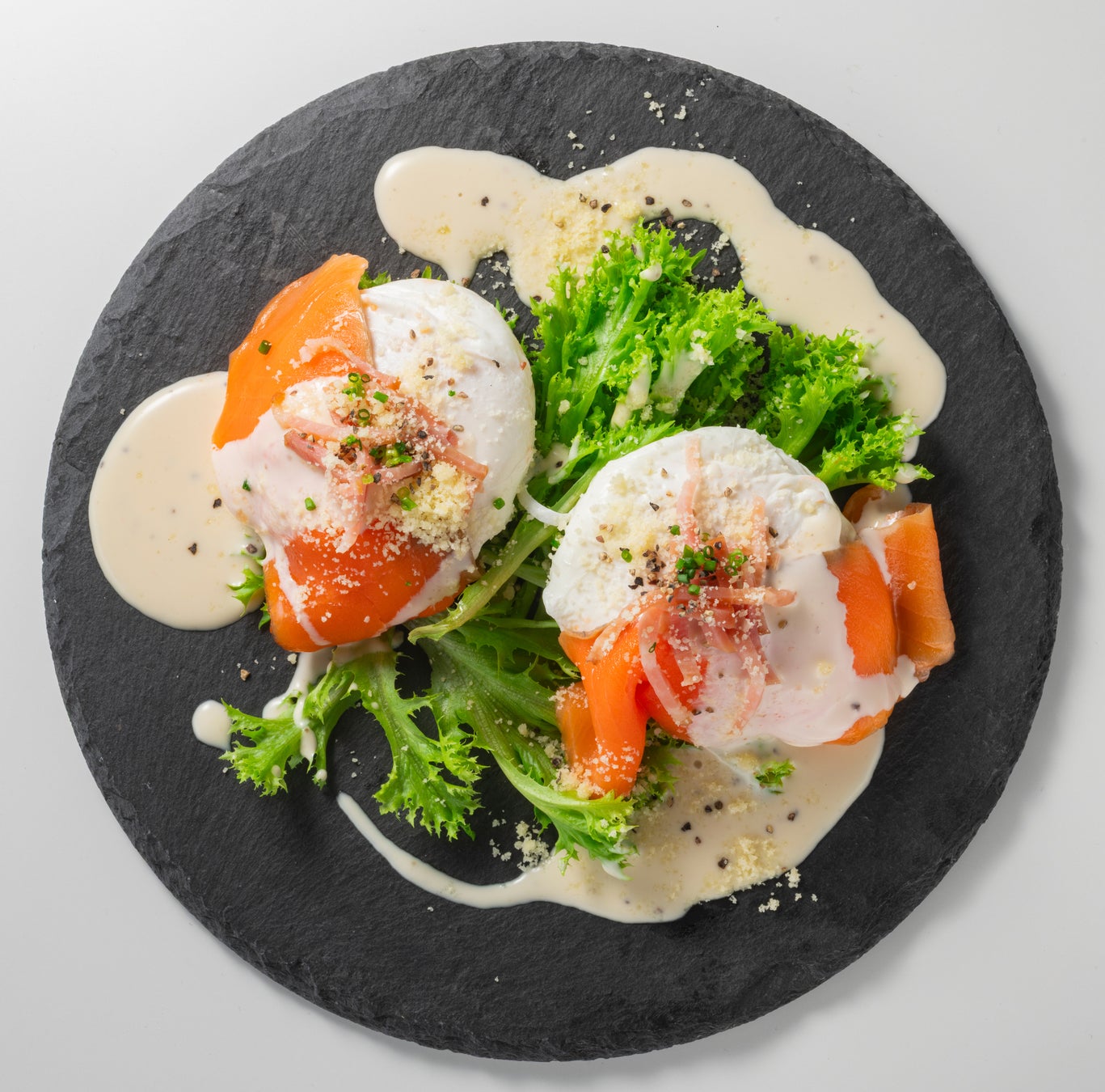 ・大分県産平飼い卵(ケージフリー)とスモークサーモンのシーザー