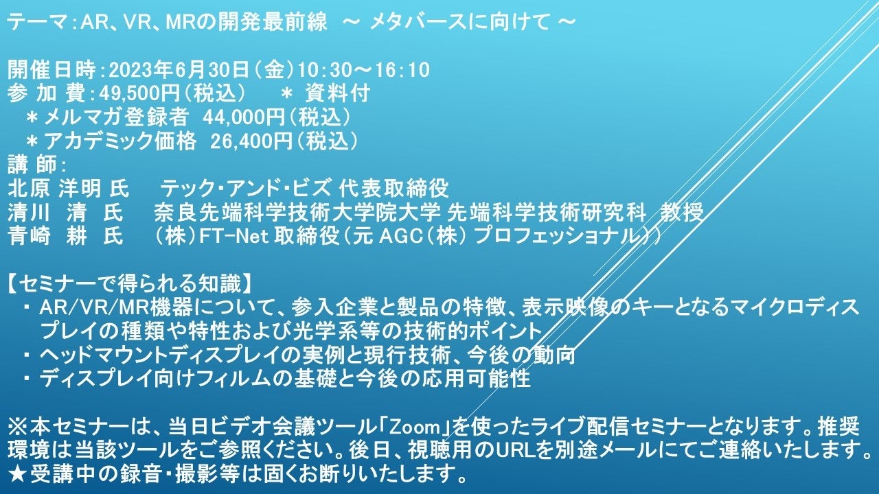 【ライブ配信セミナー】AR、VR、MRの開発最前線 ~ メタバースに向けて ~ 6月30日(金)開催 主催:(株)シーエムシー・リサーチ