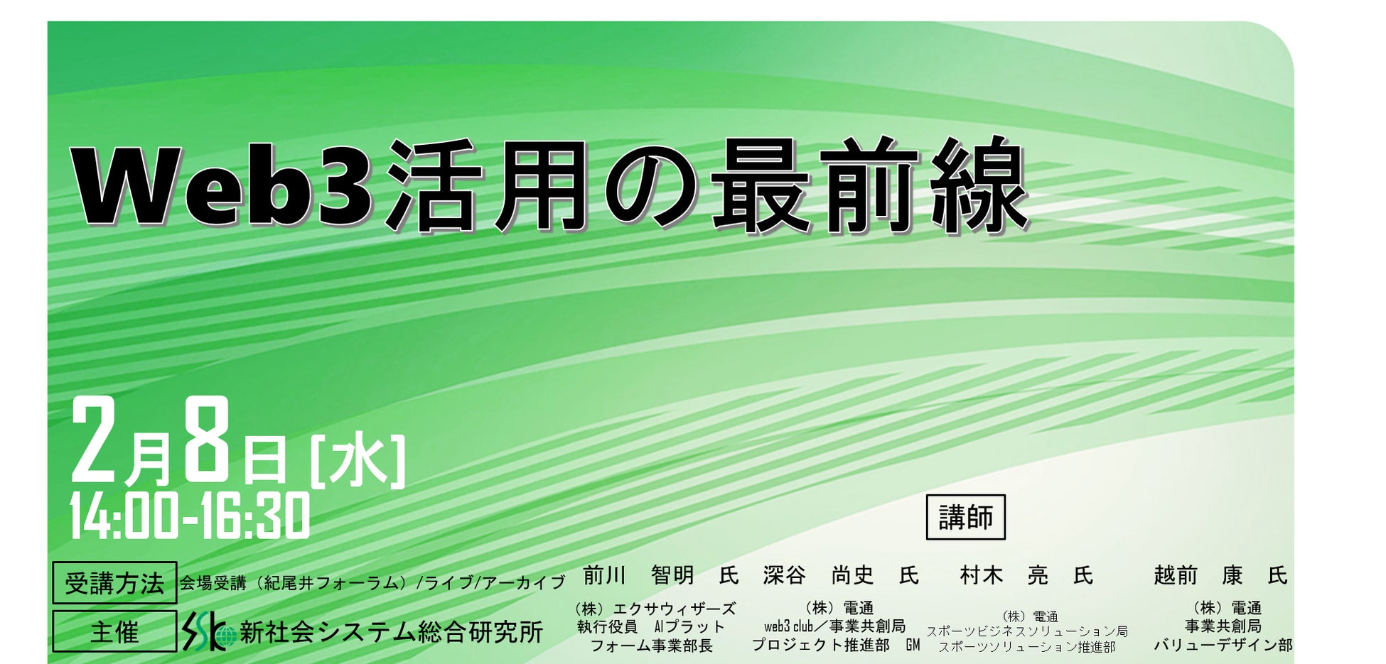 「Web3活用の最前線」と題して(株)エクサウィザーズ 前川氏/(株)電通 深谷氏/村木氏/越前氏のセミナーを2023年2月8日(水)に開催!!