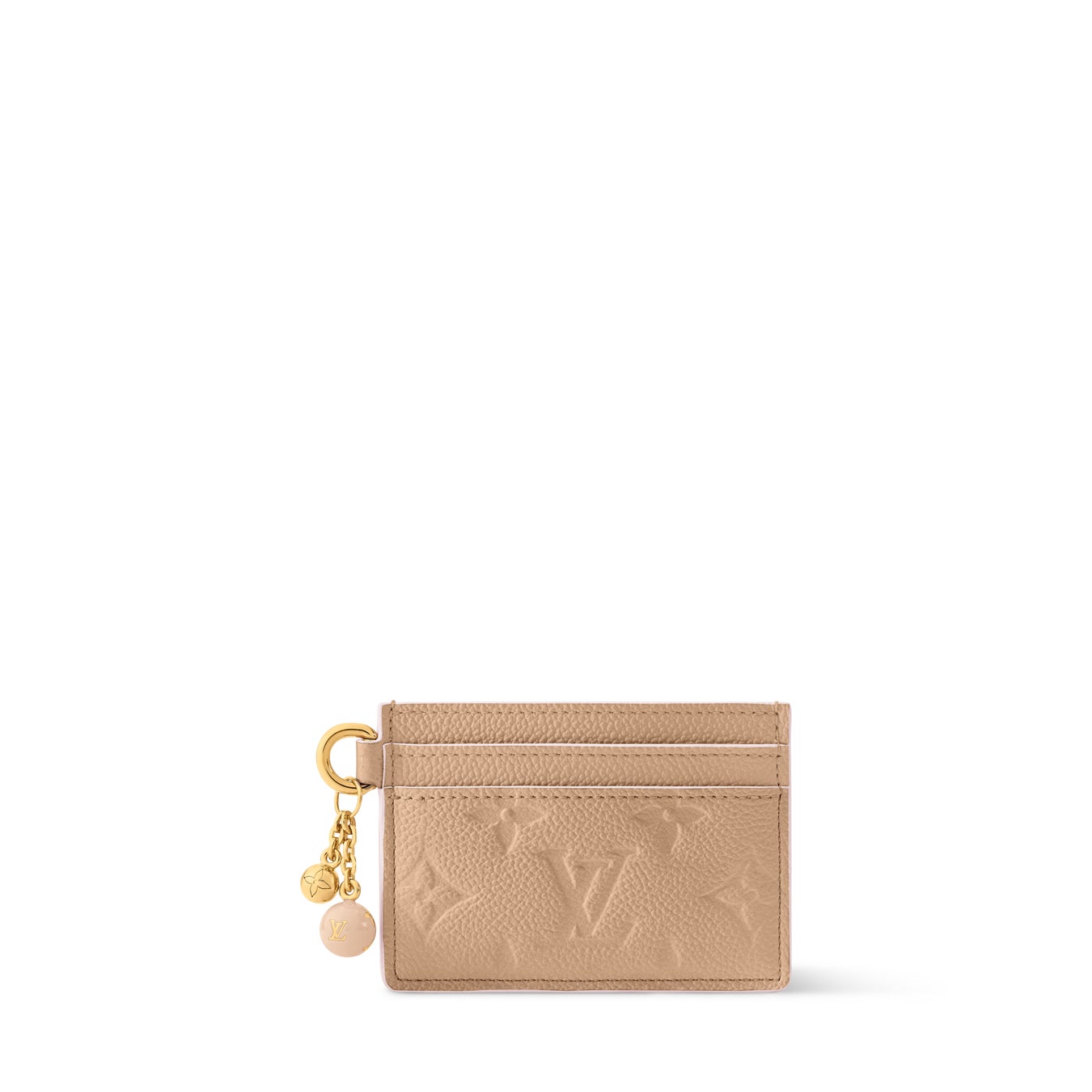 ファッションアイテムにフェミニンなアクセントを添えるカードケース「ポルト カルト·LV チャーム」。両サイドにそれぞれ2つずつのカードスロットを備えた機能的なデザインで、中央のコンパートメントは洗練されたモノグラム·フイユアージュ プリントで彩られています。
