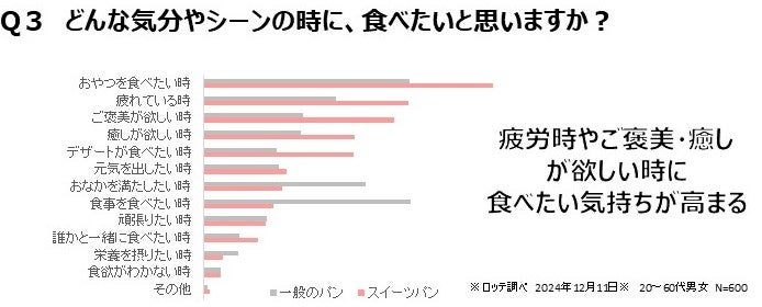 クリームやチョコレートをたっぷり使用したり、まるでケーキのようにデザート感のある「カヌレ」や「マリトッツォ」などのスイーツパンを最近よく見かけます。パンは一般的に食事として摂られている方が多いですが、調査を実施するとスイーツパンはさまざまなシーンや目的で食べられていることがわかりました。特に、疲れている時や、癒しが欲しい時などは自分自身へのご褒美として食べられているようです。そこでスイーツパンは食事だけではなく、デザートとしても楽しめる領域にチャンスがあるのではないかと考え、疲れたときに甘く癒されるチョコをベースとしたスイーツパンの開発に着手しました。
