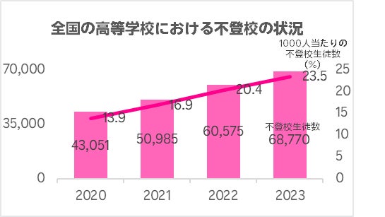 高校生の不登校は深刻な社会問題となっており、文部科学書の調査によると、2023年度には過去最多の68,770人が不登校、約50人に1人が学校に通えていない現状です(注3)。無気力や不安、人間関係の悩みなど要因は様々ですが、eスポーツは、コミュニケーションが苦手な生徒でもチームで協力し得意なことを活かして活躍できるため、自己肯定感を高め、社会とのつながりを取り戻すきっかけとなる可能性があります。