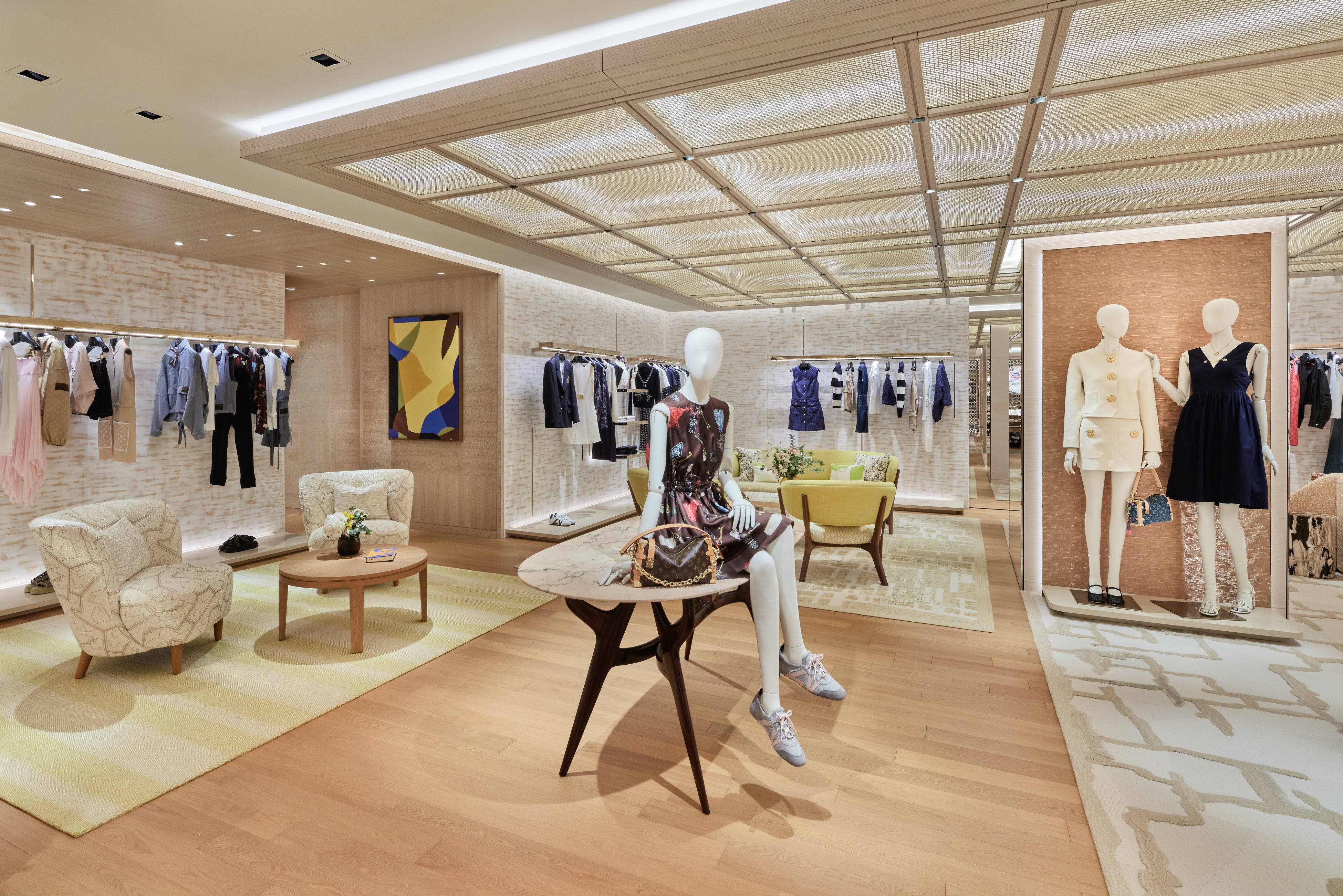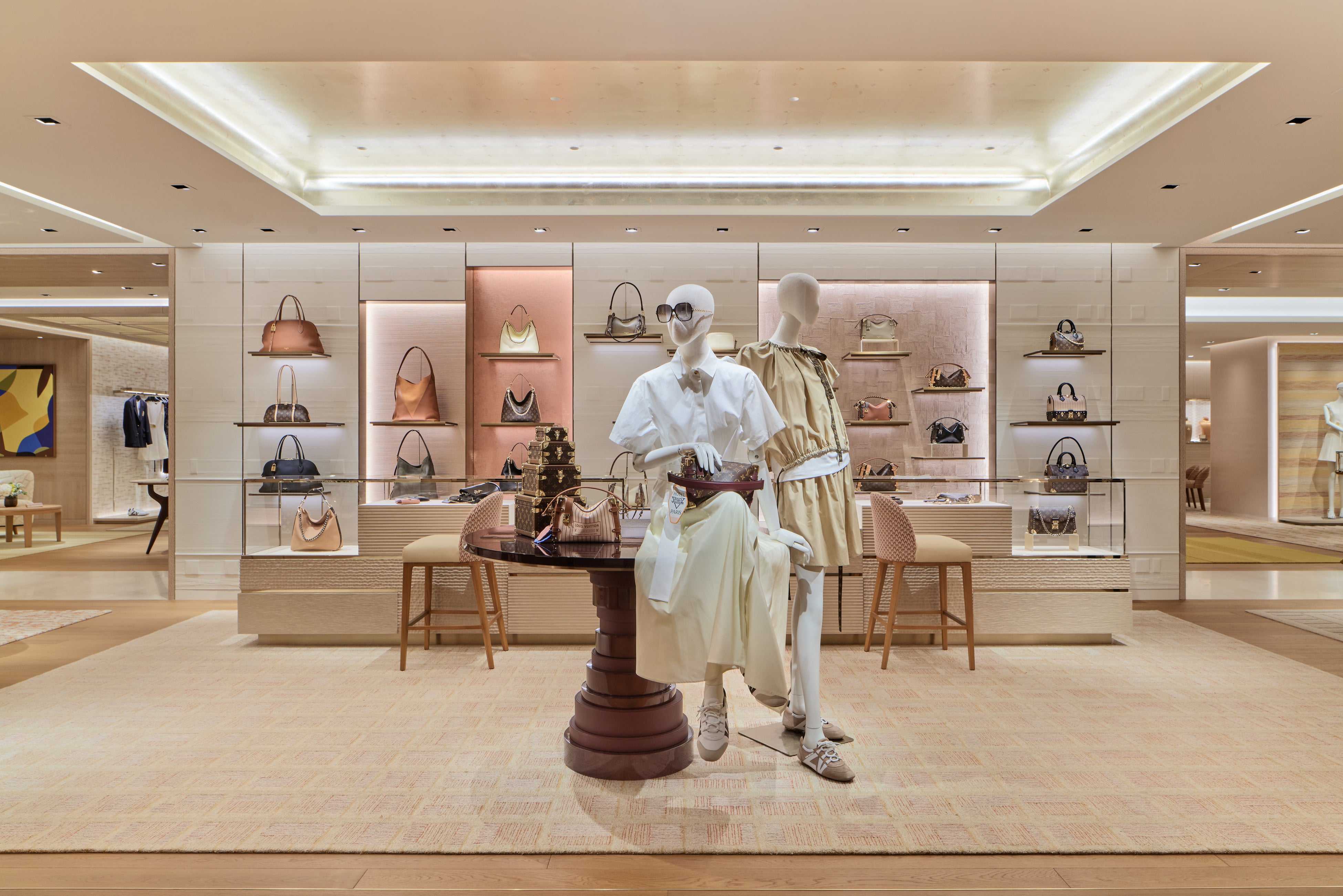 1階は柔らかな色合いを基調としたフェミニンな空間に、2階は落ち着いた色調のマスキュリンな空間が広がり、それぞれのフロアでルイ・ヴィトンの世界観をより深くご体感いただけます。