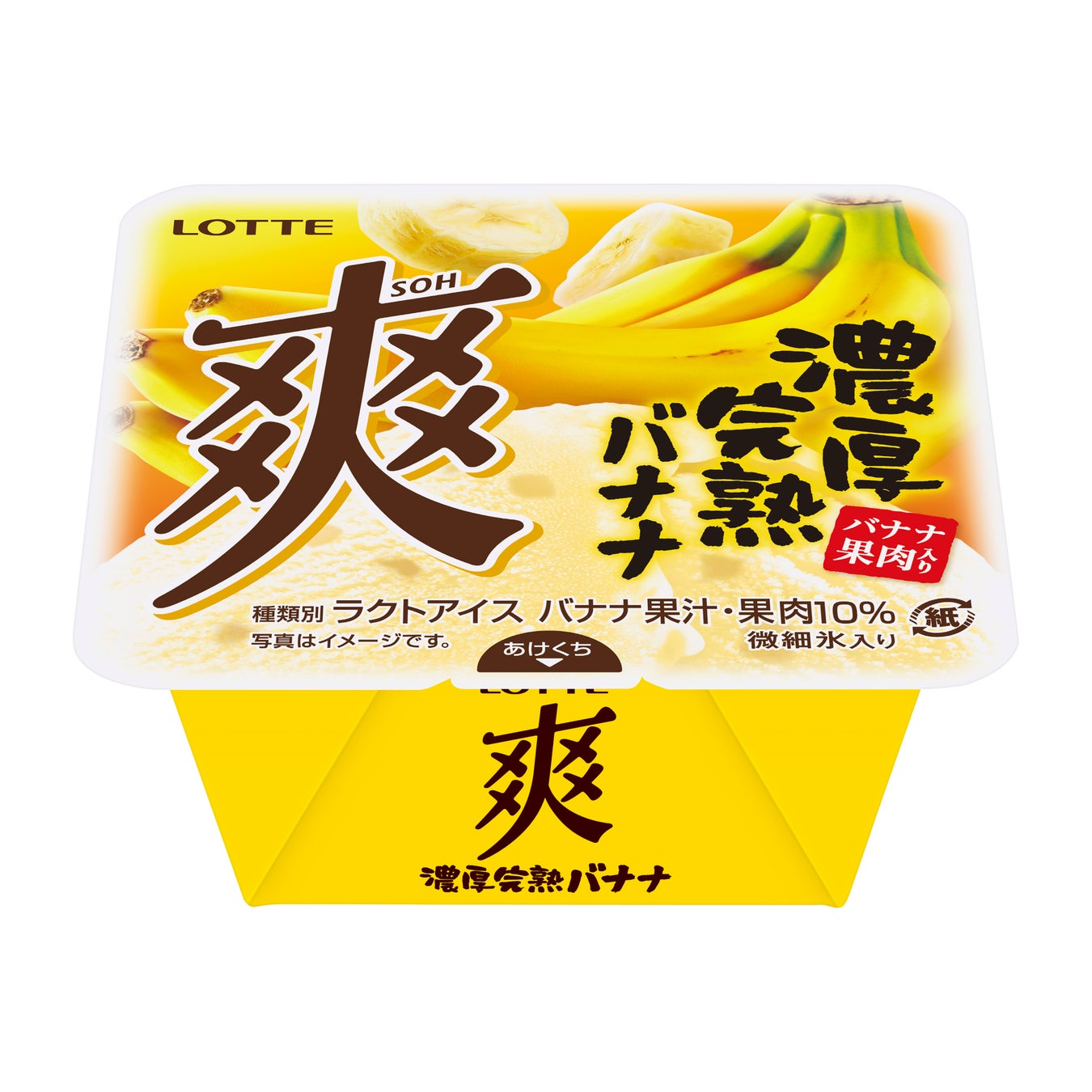 株式会社ロッテは1月20日(月)に、微細氷入りでくちどけの良い食感とさっぱりとした後味が楽しめる 「爽」ブランドから、『爽 濃厚完熟バナナ』を発売いたします。近年人気のバナナジュース専門店が提供するようなバナナの甘く熟した味わいや芳醇な香りがしっかりと感じられる仕立てです。爽ならではの、濃厚でありながら微細氷が口の中を洗い流すことで生まれるすっきりとした後味も特長です。この冬にぜひにお試しいただきたいフレーバーです。