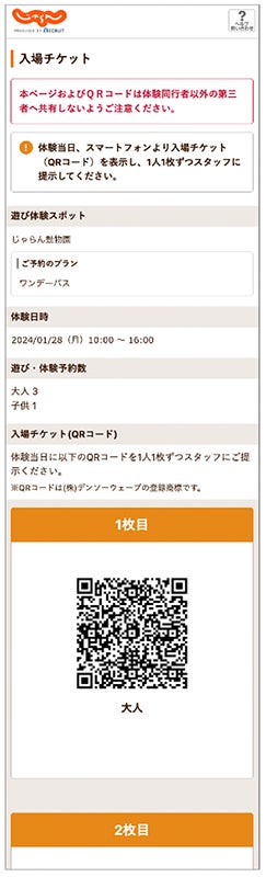 着地型観光サービス『じゃらんnet遊び・体験予約』入場時のチケットをQRコード化