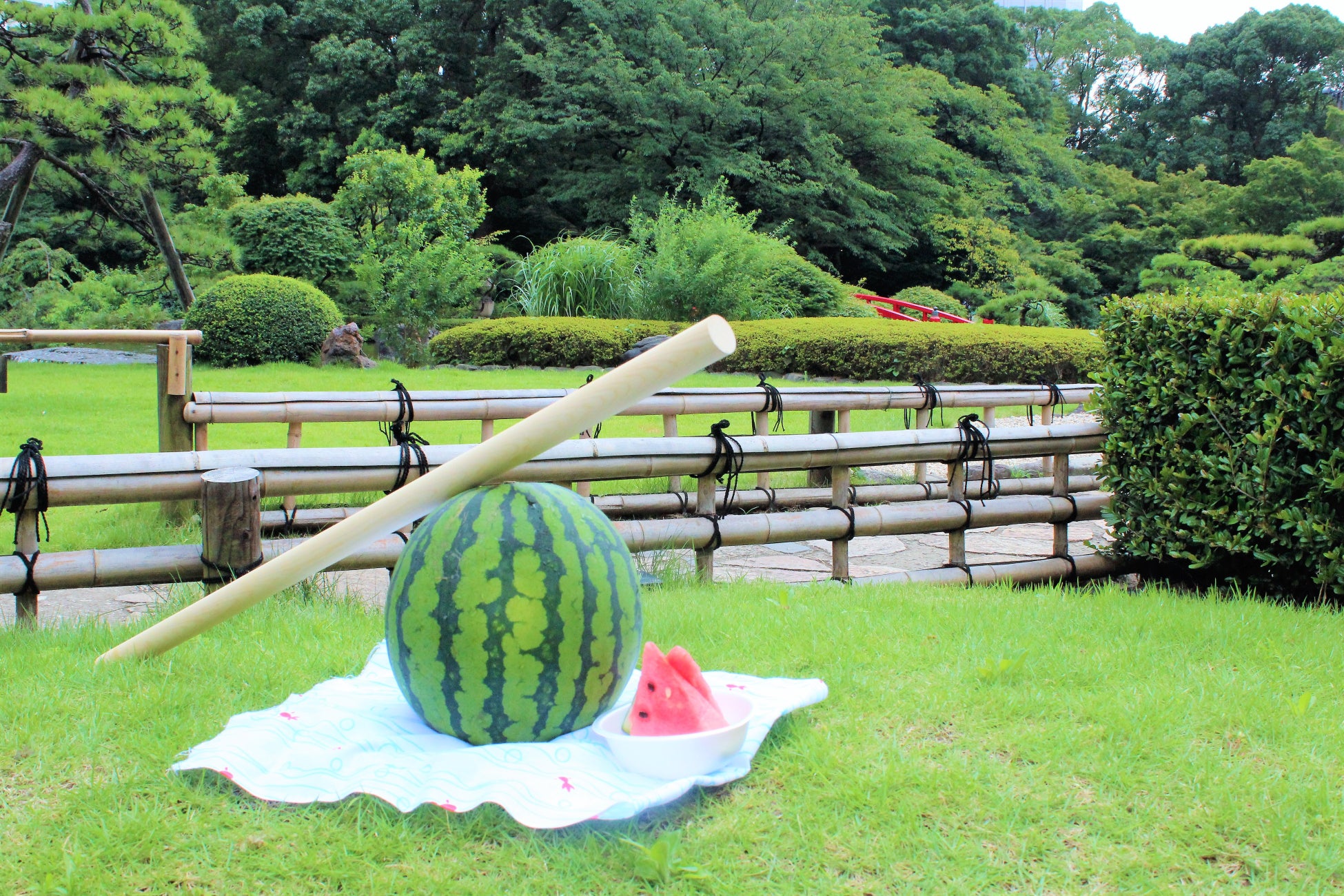 コロナ禍でも屋外で楽しめるイベントとして2020年にスタートした『お庭でスイカ割り』。お子さまから大人まで、老若男女を問わず大変好評をいただいてまいりました。みんなで楽しんだ後は、キンキンに冷えたみずみずしいスイカをその場でお召し上がりいただくことができます。