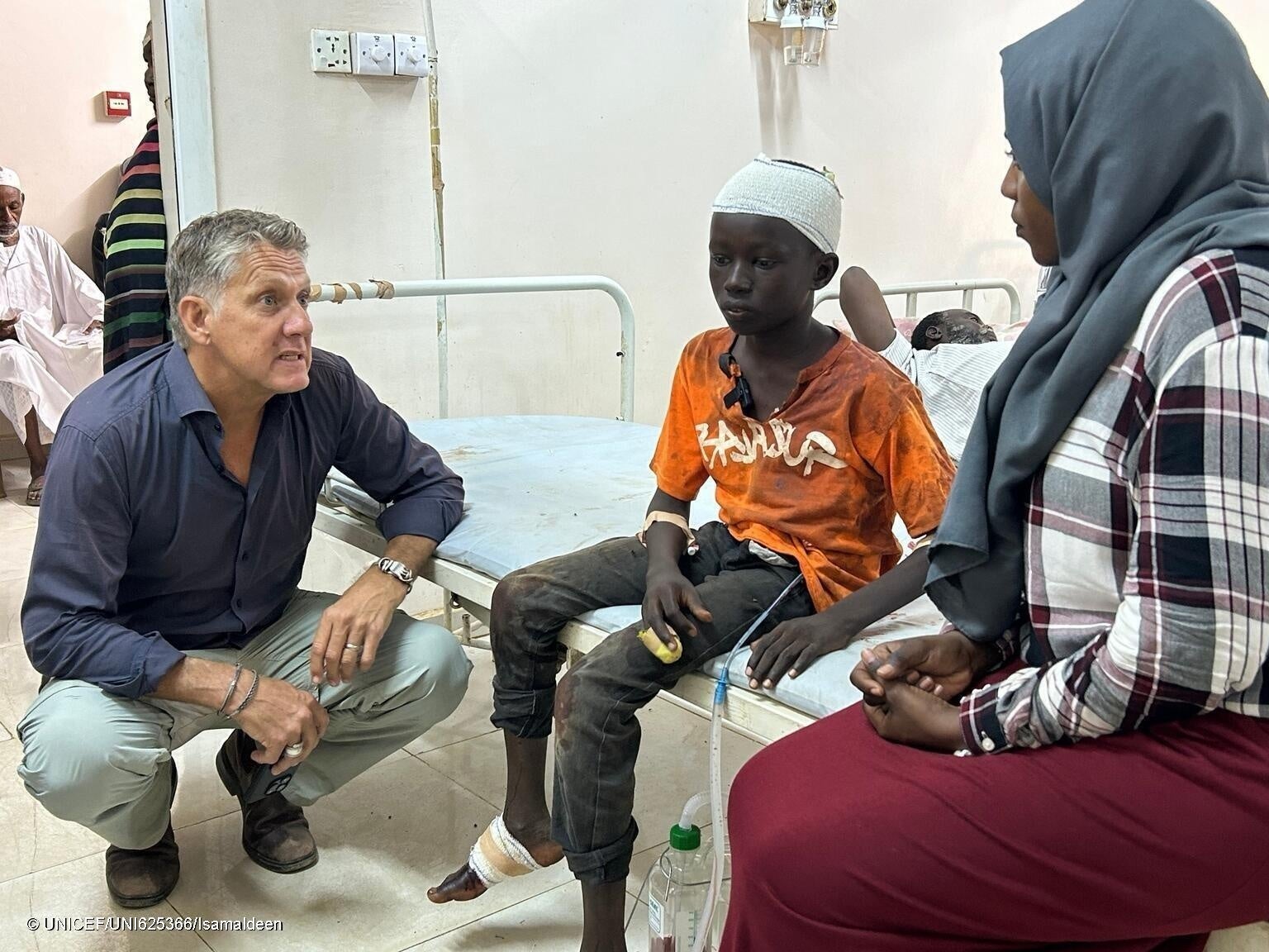 土曜日の朝、地元の少年サッカーチームがハルツーム州にあるユニセフの「子どもにやさしい空間」でプレーしていたところ、砲弾がサッカー場を直撃しました。男の子2人が亡くなり、チームのほぼ全員が負傷しました。私は、病院と、ユニセフの「子どもにやさしい空間」の両方で、この子どもたちに会いました。彼らは今も取り乱した状態にあります。