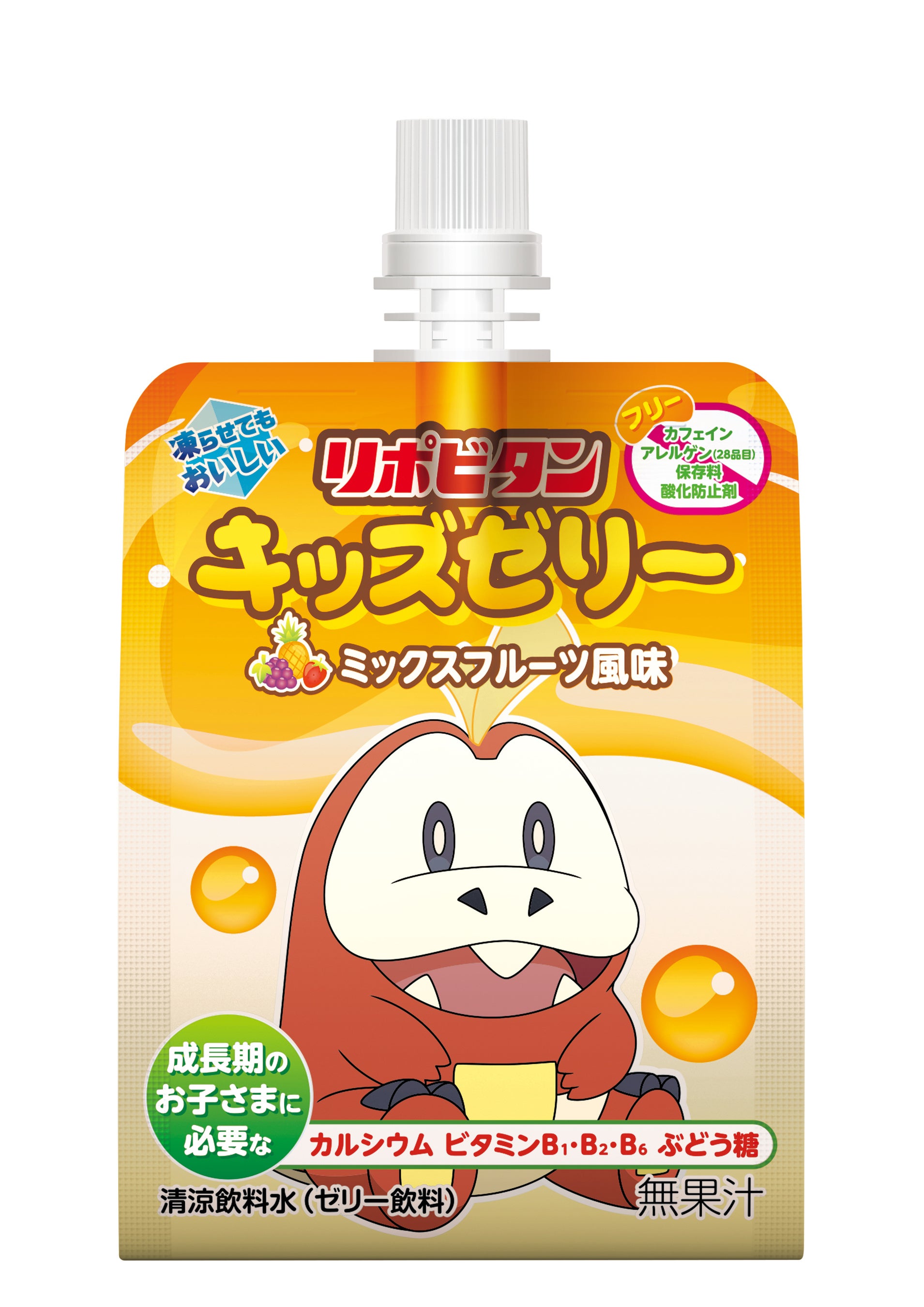 ●リポビタンキッズゼリーは、成長期のお子さまに必要なカルシウム、 ビタミンB1・B2・B6、ぶどう糖を配合した、美味しいゼリー飲料です。