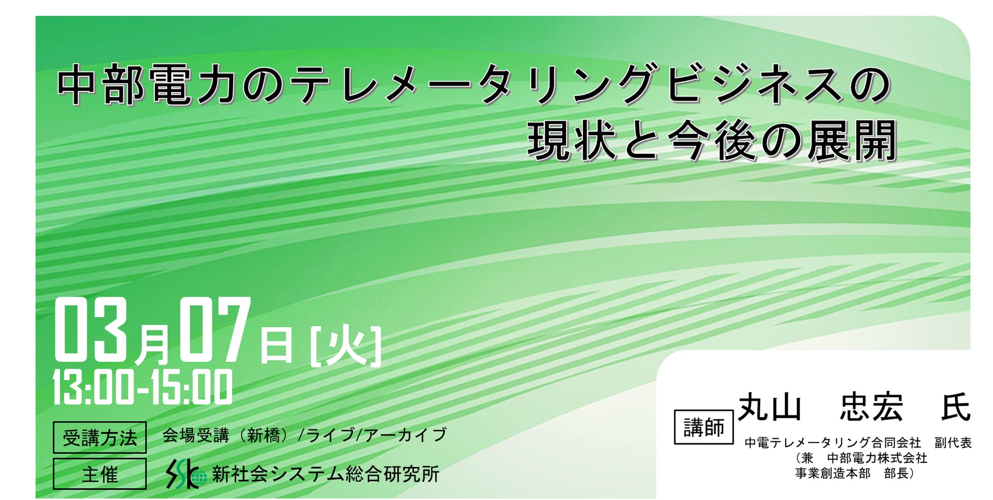 「中部電力テレメータリングの展開」と題して中電テレメータリング合同会社 副代表 (兼 中部電力株式会社 事業創造本部 部長)丸山 忠宏氏のセミナーを2023年3月7日(火)に開催!!