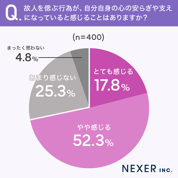 最後に、故人を偲ぶ行為が自分自身の心の安らぎや支えになっていると感じるかどうか聞いてみました。