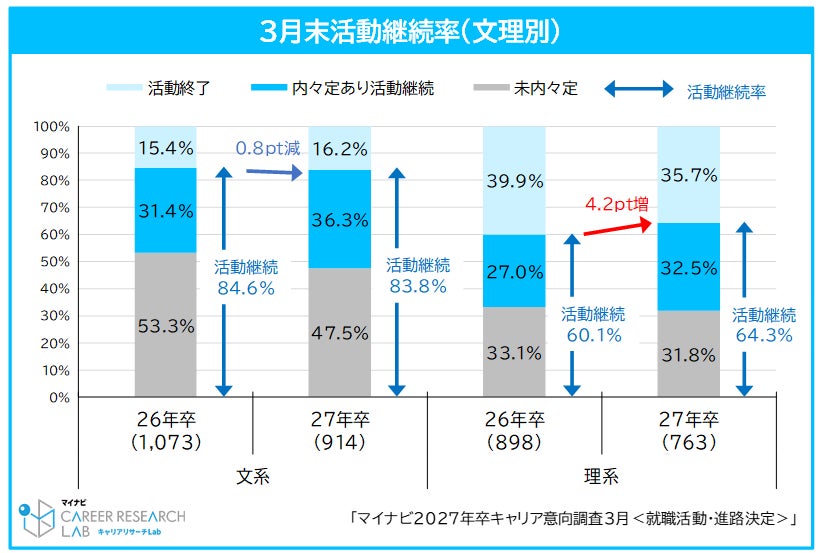 株式会社マイナビ(本社:東京都千代田区、代表取締役 社長執行役員:粟井俊介)は、2027 年卒業予定の全国の大学生、大学院生を対象に実施した、「マイナビ2027年卒大学生キャリア意向調査3月<就職活動・進路決定>」の結果を発表しました。