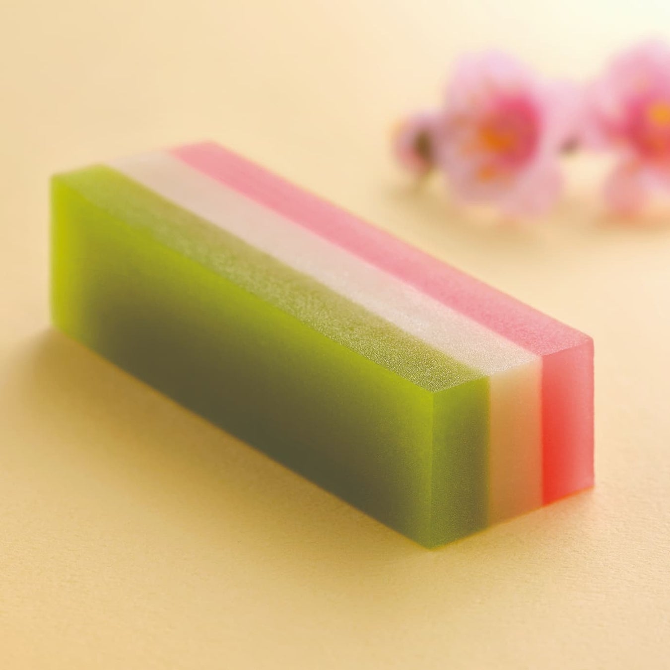 もちもち食感の薄い生地であんを包み、塩漬けの桜葉で巻きました。