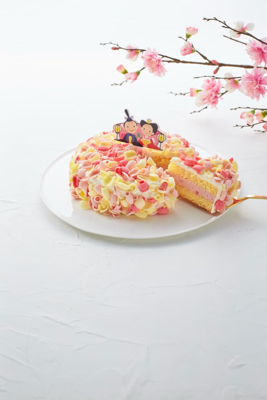 たまごの風味豊かなふわふわのスポンジに、甘酸っぱいストロベリークリームをサンドし、クリームシャンティと白、ピンク、赤色のコポチョコレートで華やかに包み込みました。