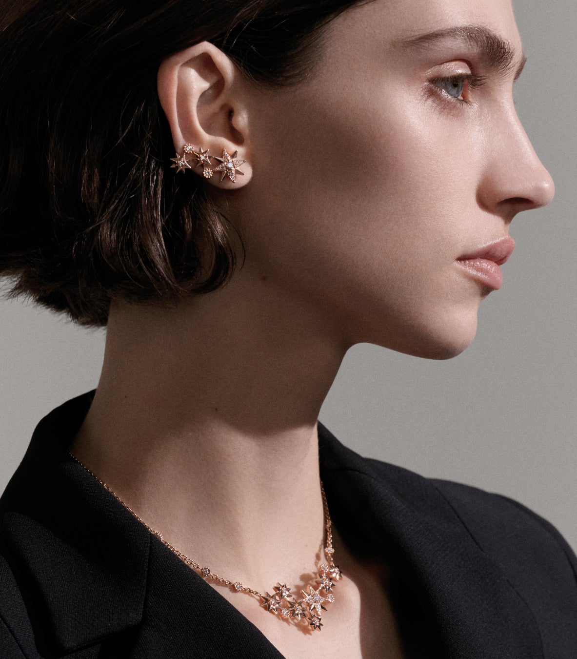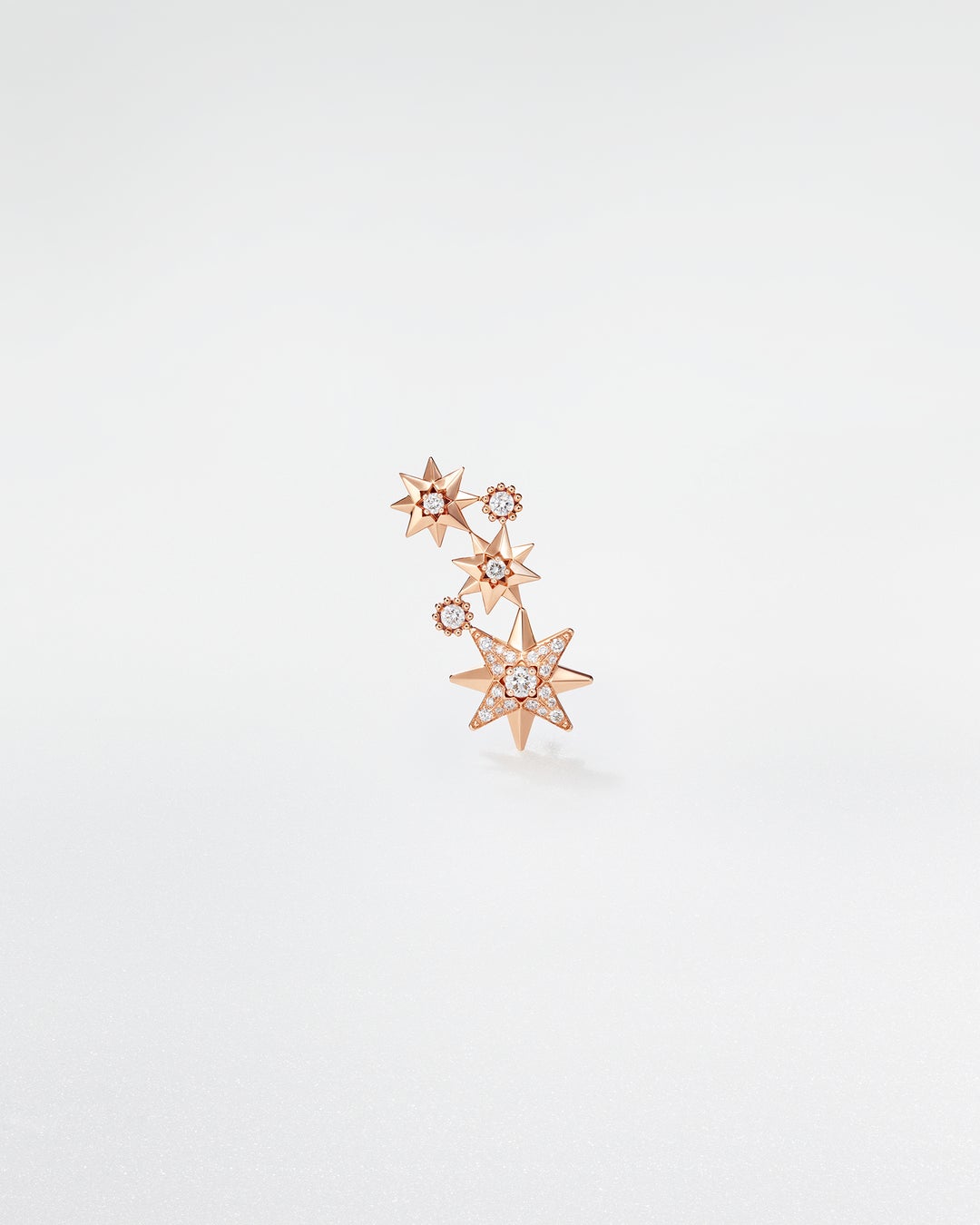 1946年4月18日の夜、パリの通りを歩いていたクリスチャン・ディオールは、道端でメタル製のスターを見つけました。このスターとの出会いから勇気を得たムッシュ ディオールは、モンテーニュ通り30番地に自身のクチュールメゾンを創設することを決意します。ファイン ジュエリーのクリエイティブ ディレクターであるヴィクトワール・ドゥ・カステラーヌは、ムッシュ ディオールが幸運のシンボルとして大切にしていた「ラッキースター」にオマージュを捧げ、2024年に「エトワール デ ヴァン」を発表しました。「エトワール デ ヴァン」は、究極のシンプルさと洗練さが融合し、コンパスローズのモチーフを匠の技と創造性で再解釈しています。エイトポイントスター モチーフに、精緻なセッティングでダイヤモンドがちりばめられたクリエイションは、アトリエの卓越した技を余すところなく映し出しています。
