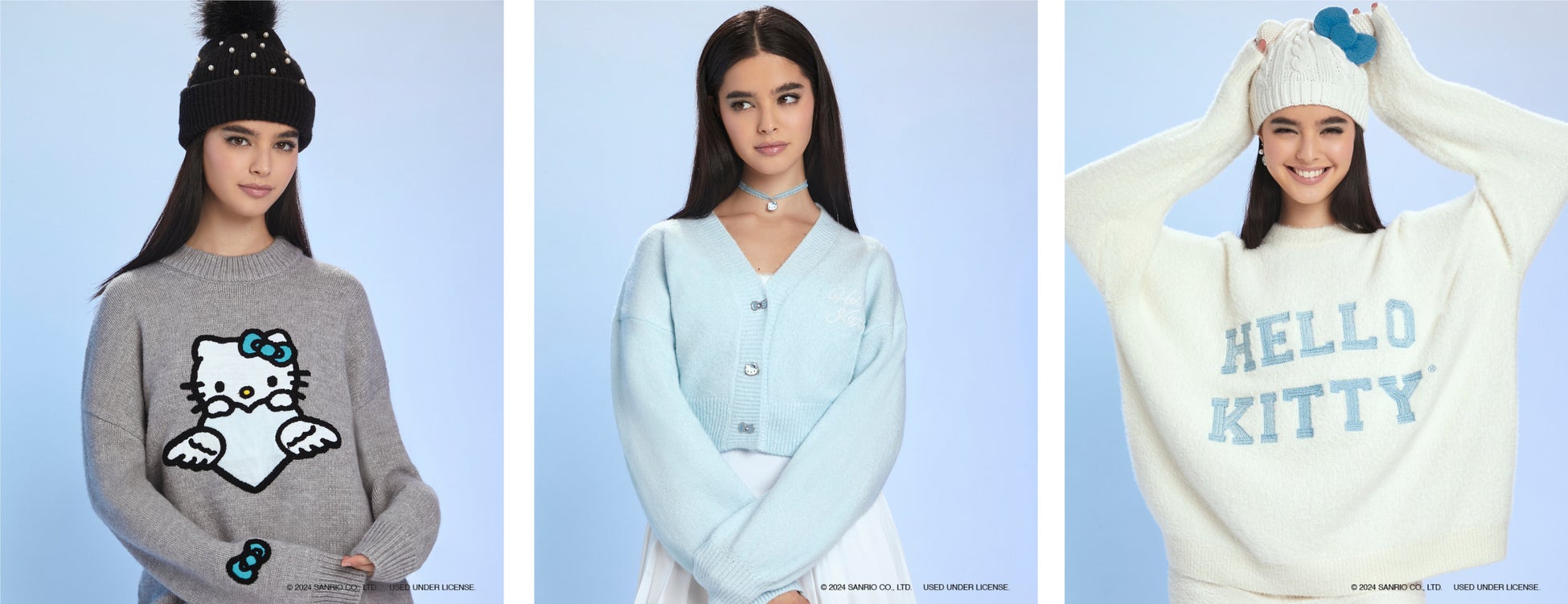 ハートの後ろから覗いたキティがデザインされたワッペンニット、キティとリボンがボタンになったブルーカーディガン、ハートとリボンの装飾が可愛いネックレスなどサンリオ好きな方はもちろん、「FOREVER 21」が好きな方にも必見のコレクションアイテムです。
