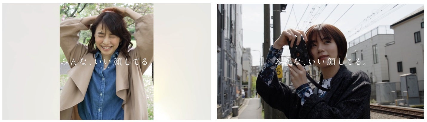 何気ない日常の中で、大口を開けて笑う瞬間や、頬がゆるむ瞬間、への字になる瞬間など、多様で豊かな表情が行き交う日常の素晴らしさ、美しさを讃え、表現しています。笑顔になれる時だけでなく、自分らしく生きるどんな瞬間も「みんな、いい顔してる。」と応援するムービーです。ナレーションを担当するのは石田ゆり子さん。木々に囲まれた静かな緑道を歩き、日常の中のゆったりとした表情を見せる石田ゆり子さんや、カラオケで熱唱して開放的な笑顔を見せる池田エライザさん、お二人の様々な表情も見ることができる内容です。