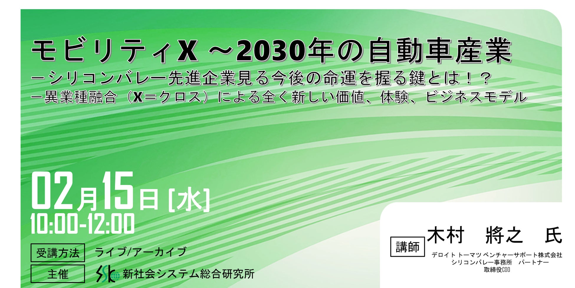 「モビリティX ~2030年の自動車産業」と題して デロイト トーマツ ベンチャーサポート(株) 木村 將之氏のセミナーを2023年2月15日(水)に開催!!