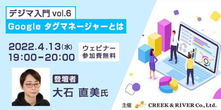 クリーク・アンド・リバー社(C&R社)は4月13日(水)、デジタルマーケティング(デジマ)にご興味をお持ちの方々を対象に、無料オンラインセミナー「デジマ入門 vol.6 ~Google タグマネージャーとは~」を開催いたします。