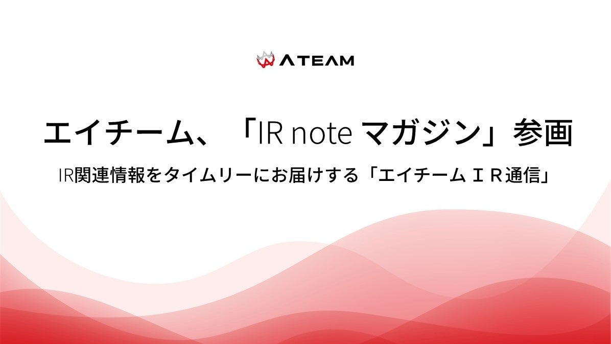 エイチームは、株主・投資家の皆さまに向けた情報発信として、四半期ごとに決算説明会の動画や書き起こし記事の開示、決算短信・有価証券報告書をはじめとする法定開示及び適時開示書類の開示、機関投資家との1on1ミーティングなどのIR活動を実施してまいりました。この度、より多くの株主・投資家の皆さまに当社を知り、興味・関心を持っていただくことを目的として「IR note マガジン」への参画を決定いたしました。今後は、当社ホームページでの情報発信に加え、「IR noteマガジン」を活用し、決算関連情報などのIR情報や事業における取り組みなどを発信してまいります。