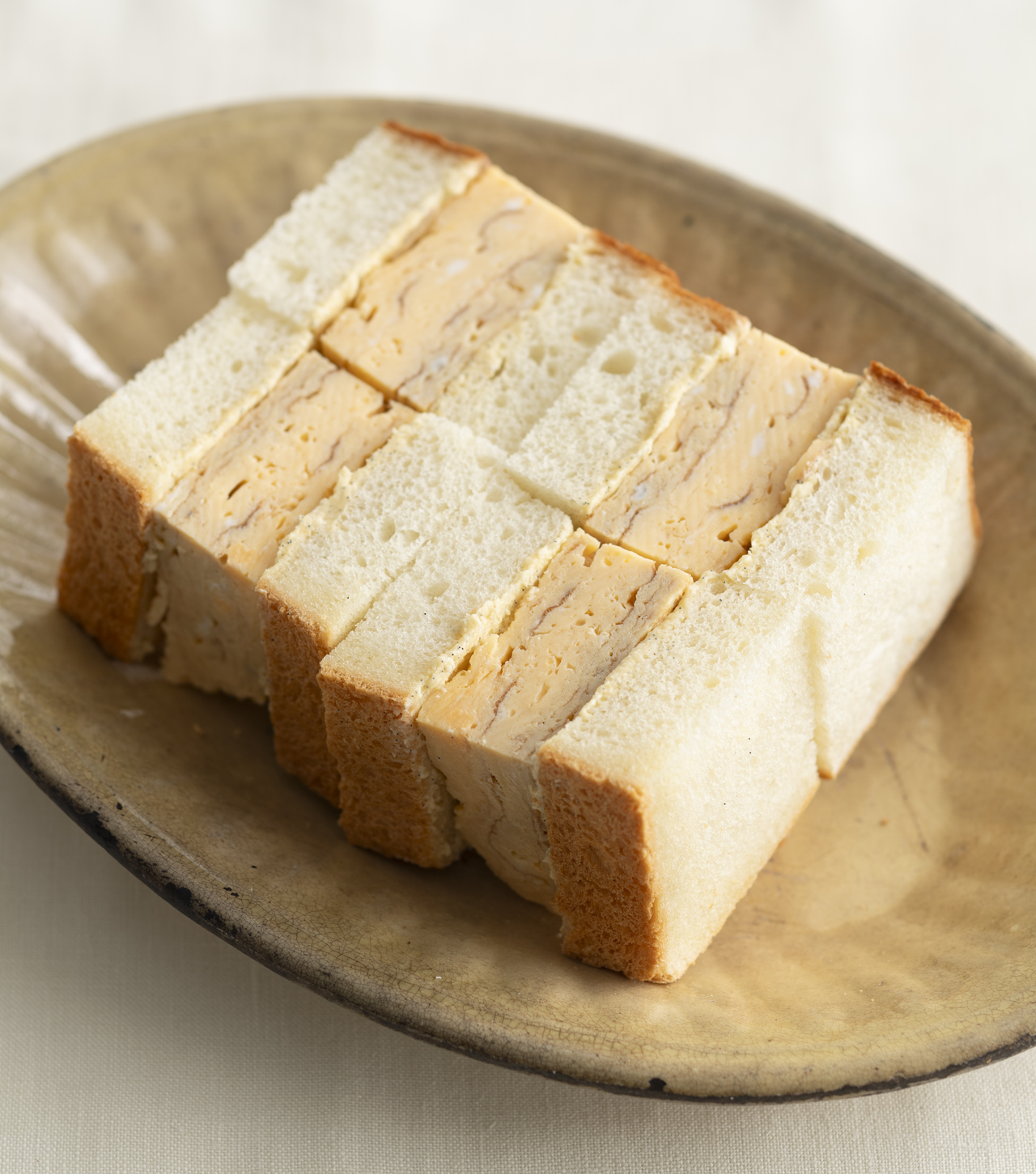 パンは、ワインやビール、ウイスキーのお供にも! パンの食べ方としては一般的なサンドイッチだって割田流は一味違います。例えば「だし巻き卵サンド」は西京味噌+バターをパンに塗ることで、まさかのフォアグラ風な味わいが出現。