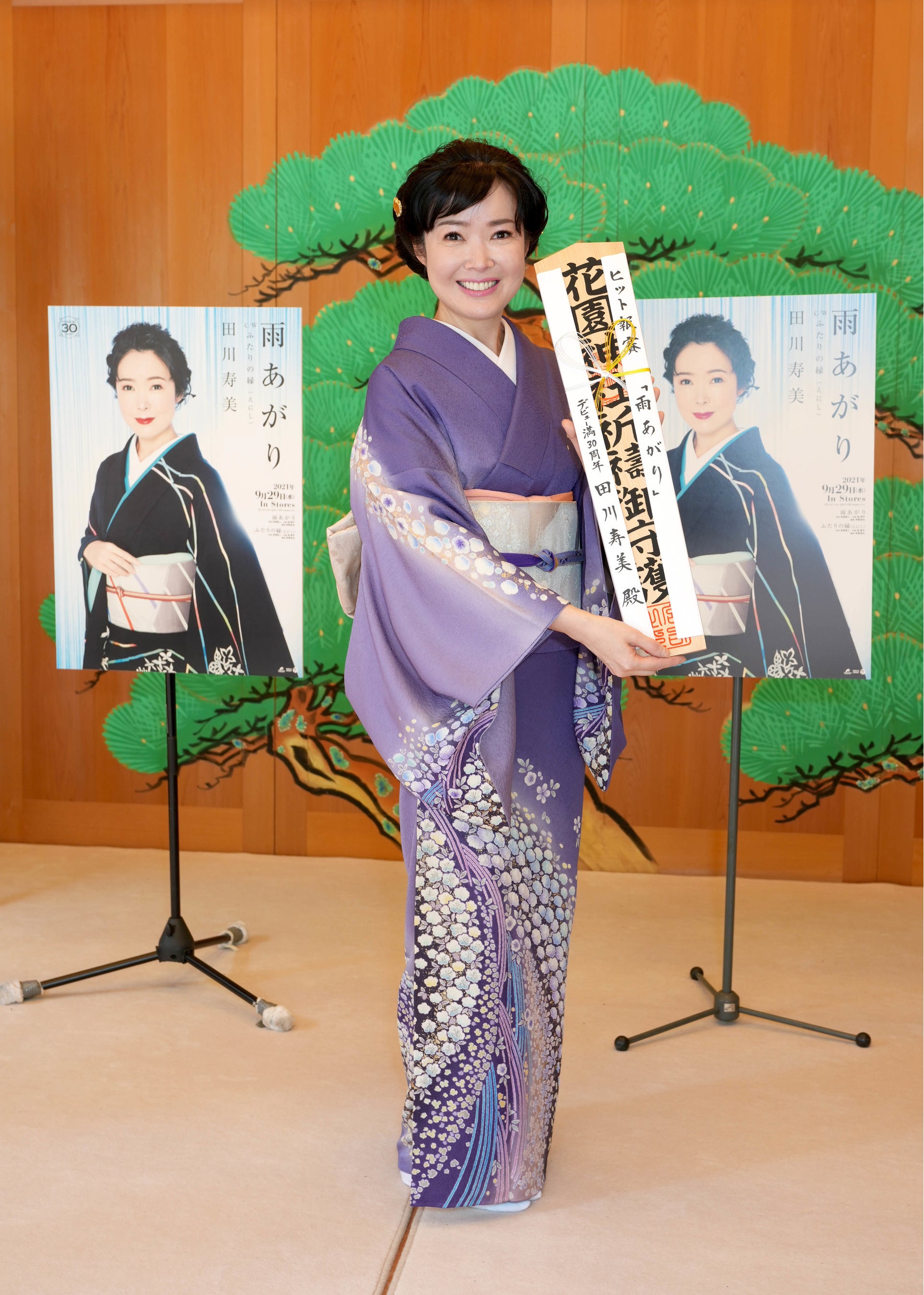1992年に「女…ひとり旅」でデビューして今年で31年目を迎えた演歌歌手・田川寿美(46)が、30周年記念曲「雨あがり」(日本コロムビアから昨年9月29日発売)がオリコン週間シングル演歌・歌謡曲ランキングで初登場2位(昨年10月11日付)を記録してロングヒット中の11日、東京・新宿区の花園神社でヒット御礼詣で&デビュー満30周年のさらなる飛躍の祈願を行った。