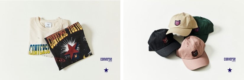 過去のヒットアイテムをアップデートした、オリジナルグラフィックをヴィンテージテイストのTシャツに落とし込んだスペースプリントTシャツ(税込み9,350円)や今シーズンのアイコン的アイテムである“CAT(猫)”の刺繍ワッペンをあしらったCATワッペンベースボールキャップ(税込み7,480円)など、ブランド得意のポップで目を惹くアイテムをたくさん取り揃えて新店オープンを飾ります。