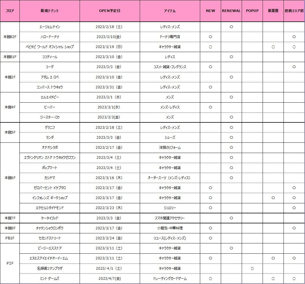 池袋PARCO 2023春 NEW&RENEWAL 特設ページ:https://ikebukuro.parco.jp/page/newopen/
