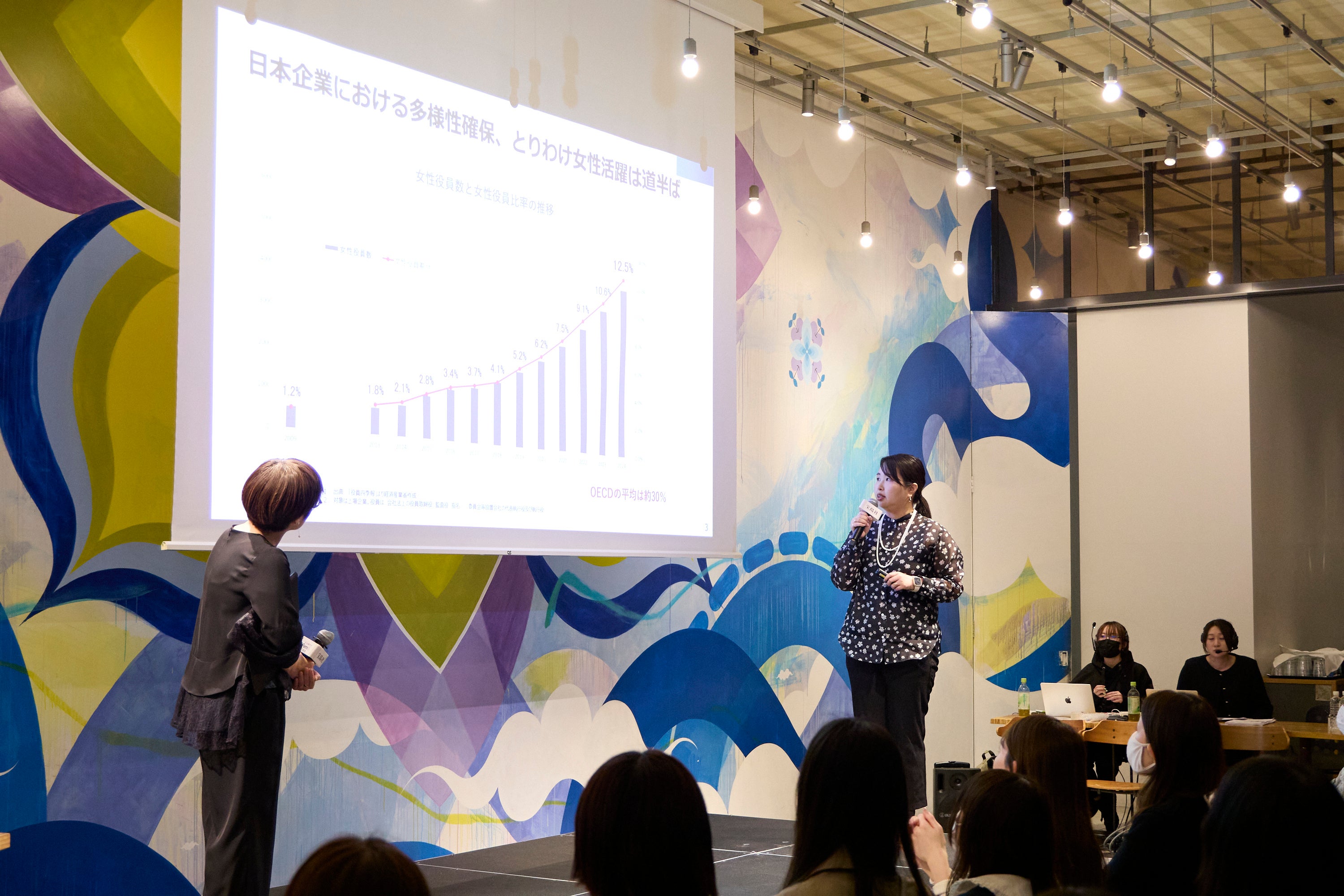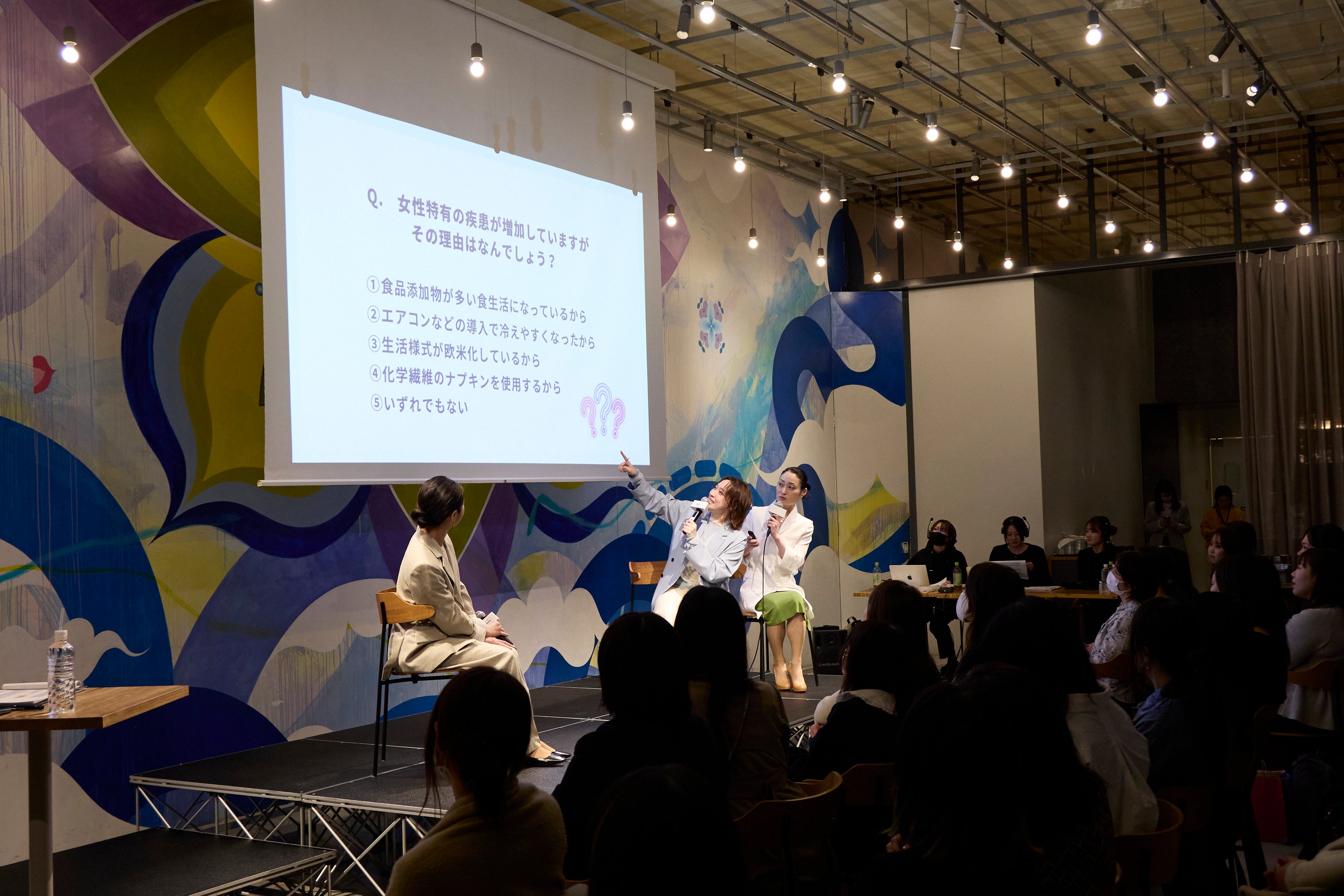 産婦人科医・小野先生は、医学的知見から「100年前に比べて現代女性の一生の生理回数は、昔の約50回に比べて約450回と、実に9倍にも増えています。女性が不調を感じやすくなっているのは自然なことであり、自分の体の状態を知識として理解し、無理をしないことが大切です」と、丸山さんや会場の参加者へアドバイスを送りました。小野先生の話を受け、丸山さんは「不調があるのは当たり前だと分かり、気持ちが楽になりました。もっと自分の体を大切にしていきたいと思います」と女性の体と向き合うことの重要性を伝えました。