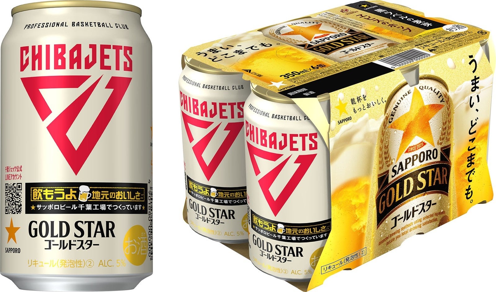 昨年に続き、本年も「サッポロ GOLD STAR」のパッケージに「千葉ジェッツ」のロゴを中央に大きくデザインしました。また、地元のおいしさを感じていただくために、サッポロビール千葉工場で製造していることを表記しました。