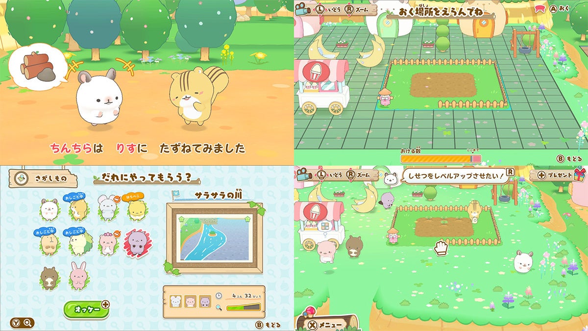 げっし~ずは、プレイヤーが指示してあげることで、お仕事をしたりご飯を食べたり、工作をしたりします。それぞれ得意不得意があったり、好き嫌いがあったりするので、工夫をしてお世話すると、村づくりが進みます。