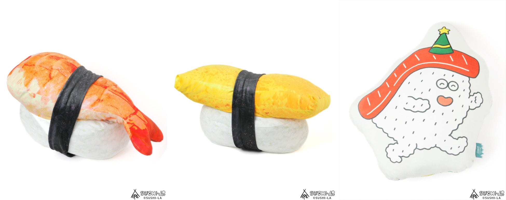 ■クッション 全3種 エビ・タマゴ:¥3,960(税込)/マグロ:¥2,970(税込)