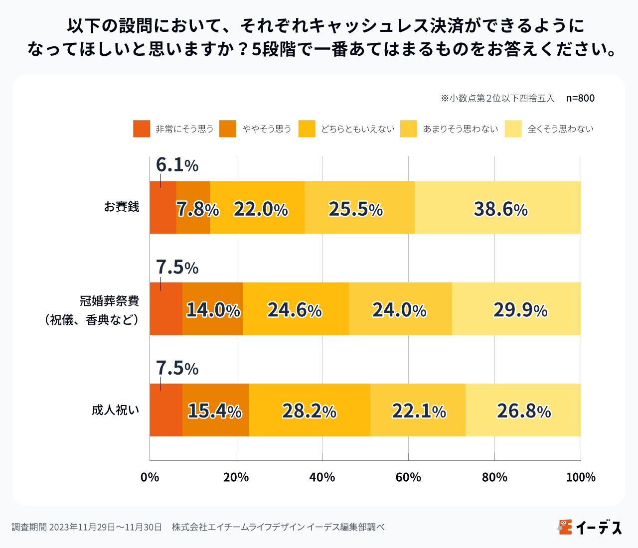 人祝い等)のキャッシュレス化を望む声は少ない結果となりました。