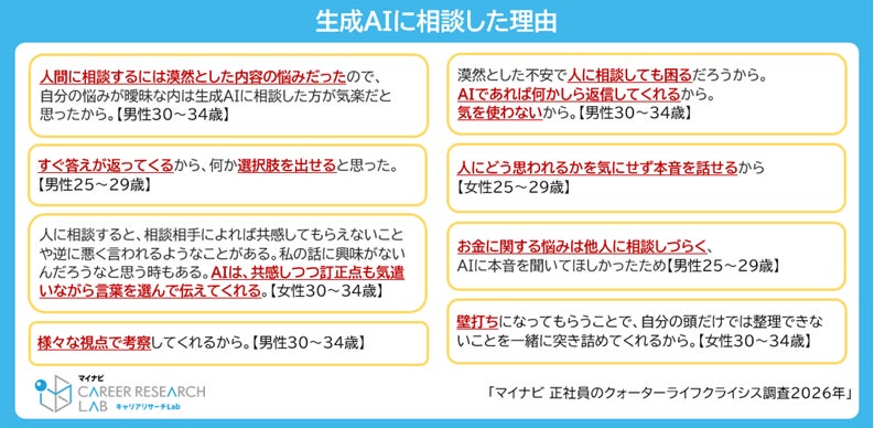 25~34歳正社員の約半数が「クォーターライフクライシス」の状態。悩み・葛藤の内容は「十分に稼げていない」が52.7%で最多。4割以上が「生成AI」に人生の悩みを相談したことがある
