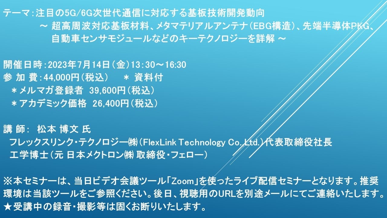 【ライブ配信セミナー】今注目の5G/6G次世代通信に対応する基板技術開発動向 7月14日(金)開催 主催:(株)シーエムシー・リサーチ