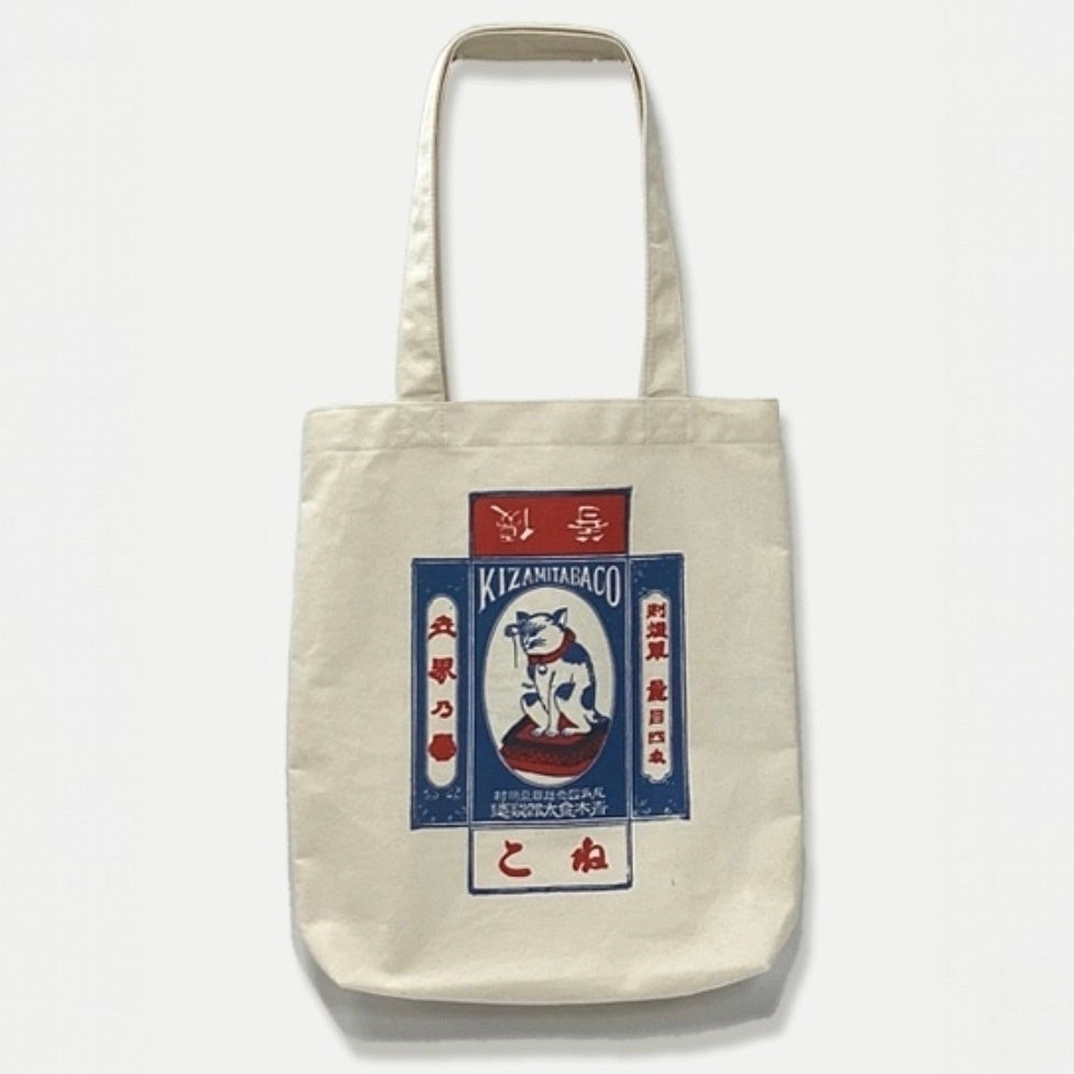 煙管用の刻みたばこ「ねこ優等」のパッケージがモチーフの同館オリジナルトートバッグ