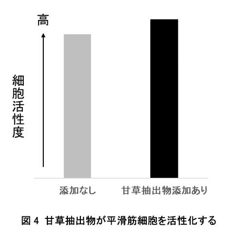 資生堂はこの成果を応用し、立毛筋を構成する平滑筋細胞を活性化する成分を探索し、甘草抽出物と木苺果実由来の抽出液に、その効果を見出しています※3(図4)。