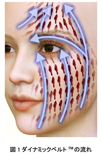 《新発見1:顔の皮ふには、重力に抵抗する「ダイナミックベルトTM」の流れが存在する》