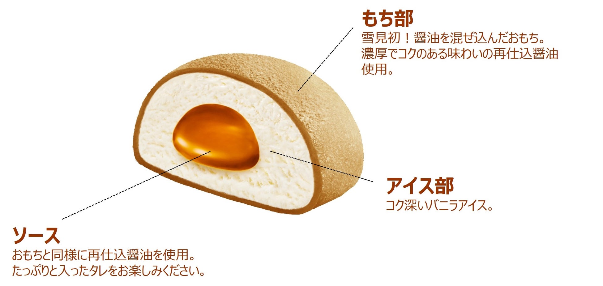 雪見だいふく初の、おもちに醤油を混ぜ込んだ仕立てです。