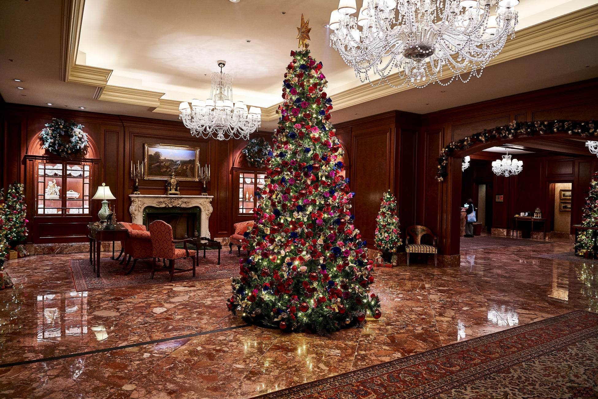 18世紀の英国貴族の邸宅を彷彿とさせる優雅な空間が広がる1階のロビーでは、ザ・リッツ・カールトン大阪が1年間で最も華やぐ時季、クリスマスシーズンにふさわしく11月14日(金)〜12月26日(金)、約1000本の薔薇で飾られた高さ約3.5mの華やかなクリスマスツリーがお目見えし、紳士淑女の皆様をお迎えします。華やかな雰囲気に包まれた館内で、心躍るフェスティブシーズンをお過ごしください。