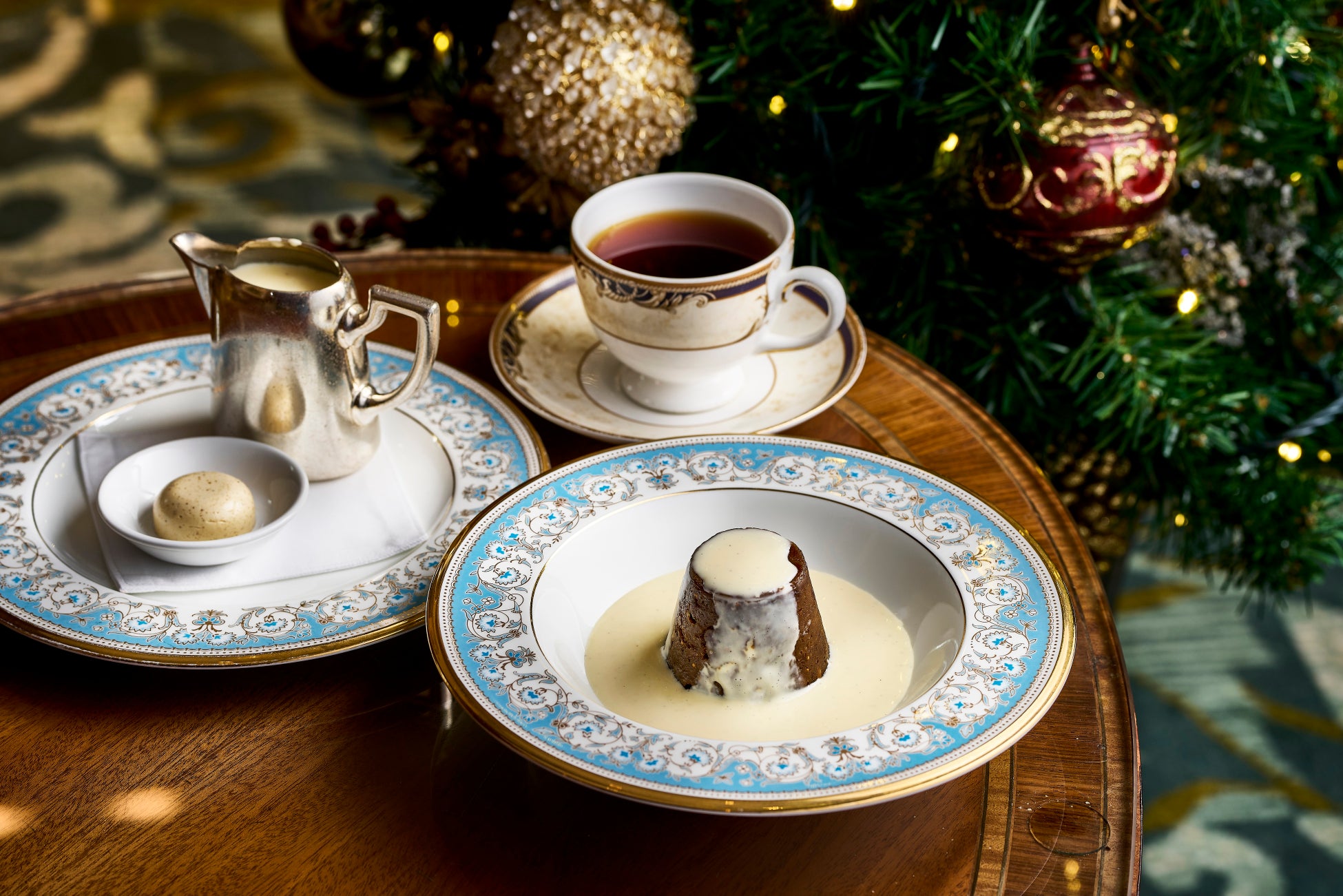 また、期間限定で英国の伝統的な祝祭のメインディッシュとして大切にされてきたクリスマス プディングもお楽しみいただけます。英国生まれのペストリーシェフ、エリオット・スタデンが手掛けたデザート“シェフエリオットのクリスマス プディング”は、パン粉と小麦粉で作られた濃厚な生地に、ドライフルーツ、クルミ、そしてクローブ、シナモン、ナツメグといった温かいスパイスを贅沢にブレンドし、ラム酒に漬け込んでから焼