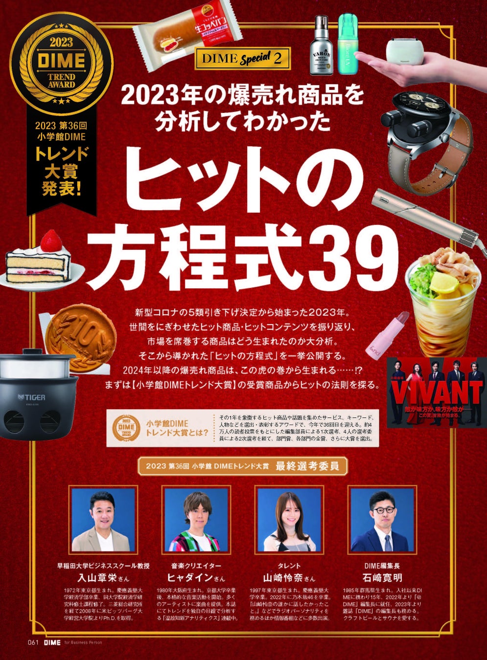 毎年恒例「2023年 第36回小学館DIMEトレンド大賞」の発表もあります。