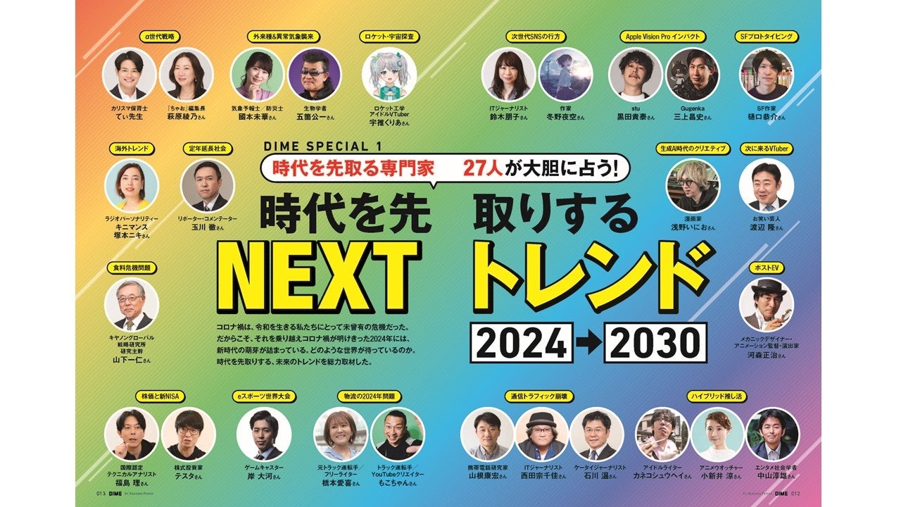 AIとの協働/イマーシブ元年/ドライバー不足で流通混乱/α世代の台頭/シニア活躍社会/ポスト「X」の行方/次世代VTuber/日本に迫る食糧危機/日経平均バブル超え
