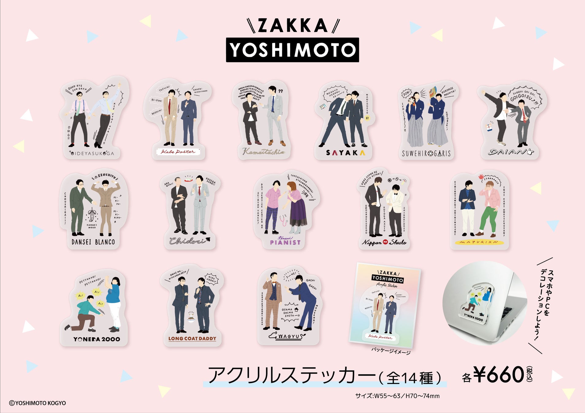 イラストレーターとコラボした「zakkaYOSHIMOTO」シリーズには、新デザインとしてカベポスター・さや香・ダイアン・ヨネダ2000 のイラストを使ったグッズが発売となります。