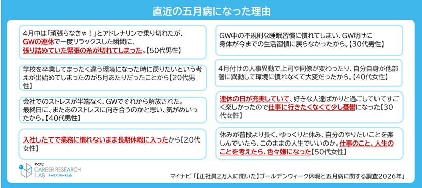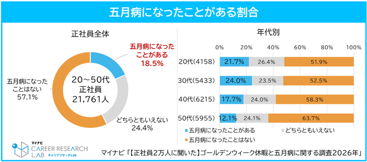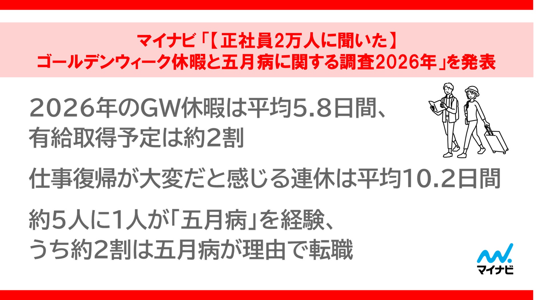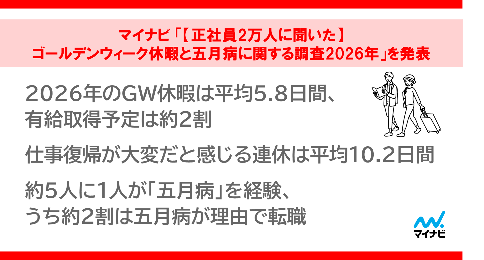 マイナビ 「【正社員2万人に聞いた】ゴールデンウィーク休暇と五月病に関する調査2026年」を発表