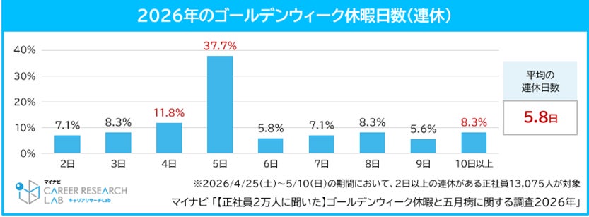◆2026年のゴールデンウィーク(GW)休暇は平均5.8日間。GW休暇に合わせて有給を取る正社員は約2割