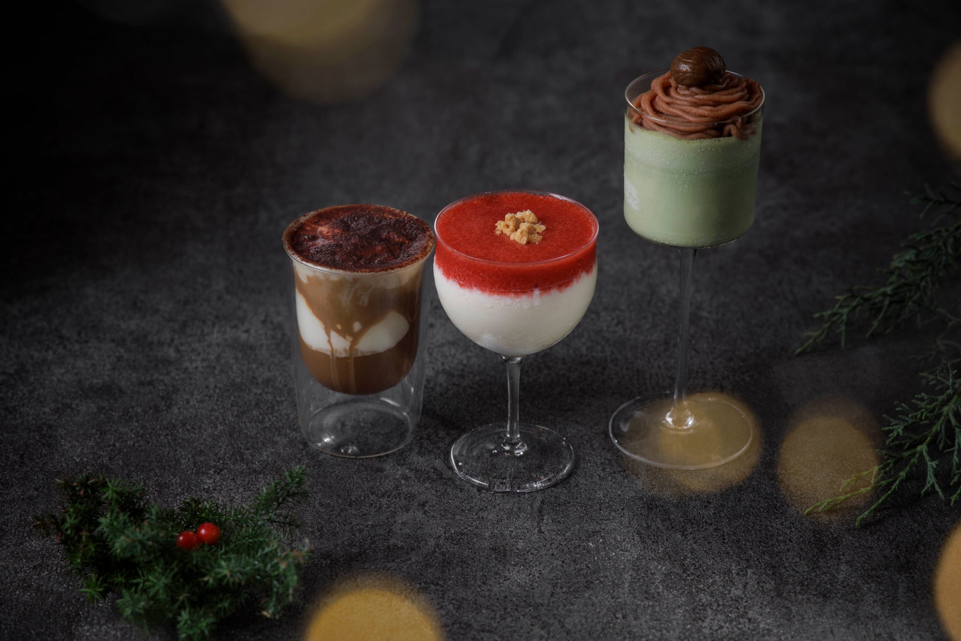 栗の風味と抹茶の香りが調和する『Mont Blanc Cocktail』、芳醇なウィスキーとエスプレッソが織りなす大人の味わい『Tiramisu Cocktail』、そして苺とカスタードの甘酸っぱさが広がる『Strawberry Tart Cocktail』。まるでデザートを味わうかのような甘さに満ちたひとときをお届けいたします。